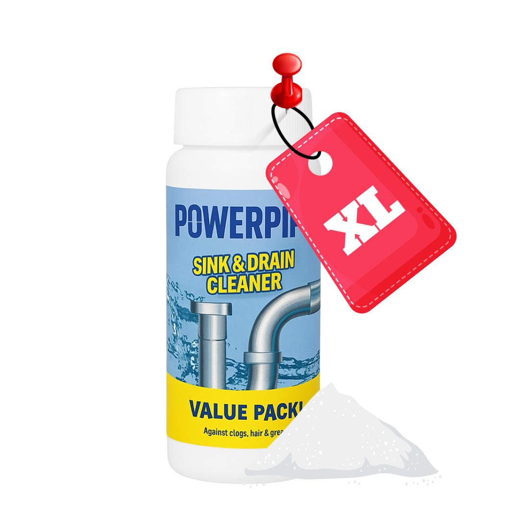 PowerPipe usa una fórmula avanzada que desintegra obstrucciones, disuelve sarro y limpia tus desagües en minutos. Solo vierte el polvo, espera unos minutos y enjuaga con agua caliente.